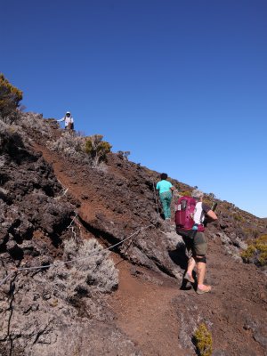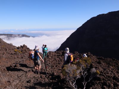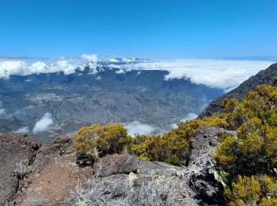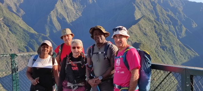 | 7 marcheurs matinaux étaient au rendez-vous au parking du théâtre champ fleuri à 6h00 ... Transport en minibus jusqu'à Grand galet pour un démarrage effectif de la randonnée vers 8h15. Pause déjeuner de 11h45 à 12h30. Première partie 880 m de dénivelé positif et deuxième partie 890 m de dénivelé positif pour une distance totale de 11 km et une arrivée à la plaine des sables à 16h15. Tout cela avec un temps magnifique et de belles photos à prendre (à l'instar de notre randonneuse photographe qui a mitraillé quelques 450 images !) ... Petite sélection suit ... | |