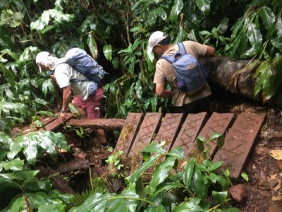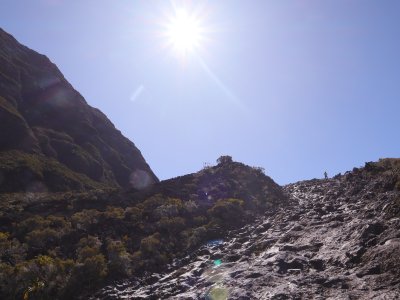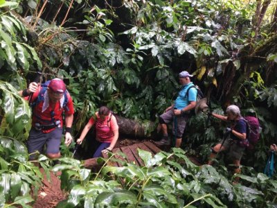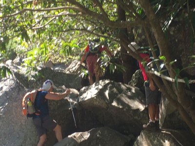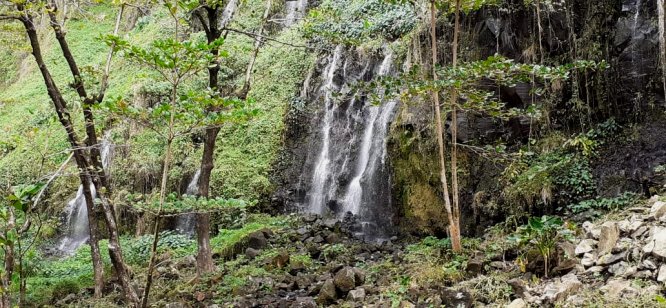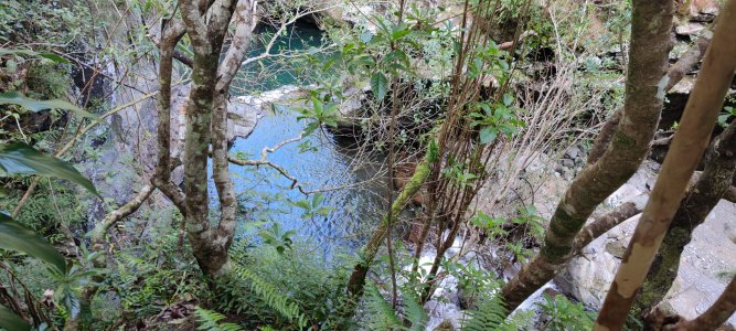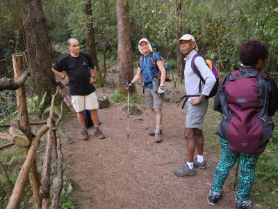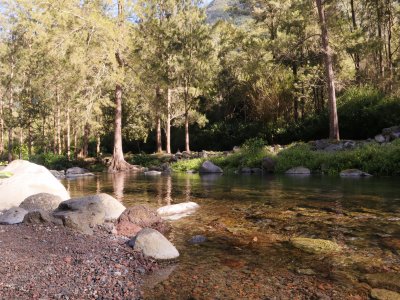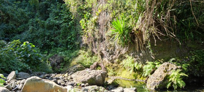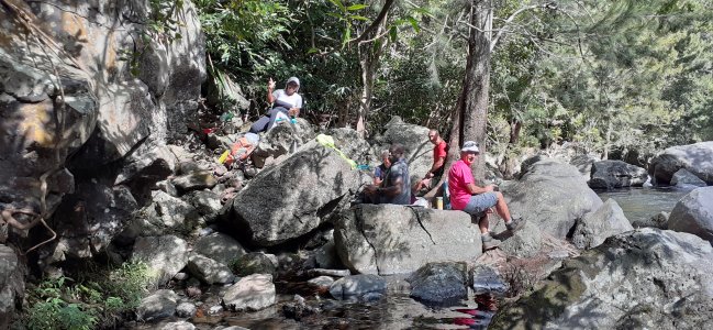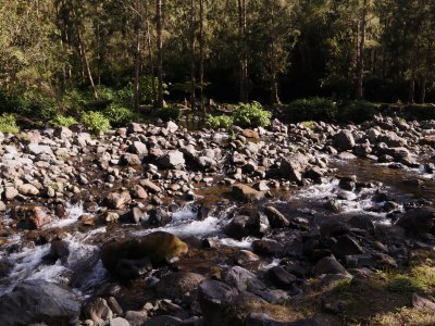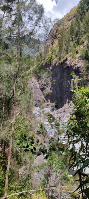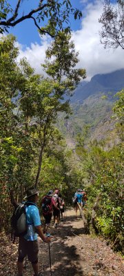 | 6 marcheurs étaient au rendez-vous à Bois court (Plaine des cafres) à 8h30 pour démarrer effectivement à 9 heures. Pour se rendre à la cascade de la mariée, passage à gué un peu difficile à cause des récentes pluies, du coup tentative d'accès à la caverne mais seul Alain ira jusqu'au bout l'escalade étant un peu vertigineux ! Pique-nique au bord de l'eau à 11h30 puis nous avons entamé la remontée (Dénivelé 1050 m / 10 km Aller-retour). Fin de la randonnée vers 15h30 pour 4 heures de randonnée effective et seulement un petit 14 degrés en arrivant au parking du belvédère de Bois-court ! Et tout le monde en forme malgré une moyenne d'âge supérieure à 60 ... | |||