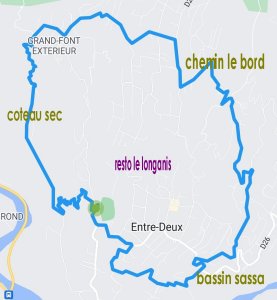 | 18 marcheurs étaient au rendez-vous à l'entrée de l'Entre Deux à 8h00 par un bon temps "hivernal " et ensoileillé ... Nous avons relié 3 sentiers entourant la village : le sentier du côteau sec puis le chemin le bord et enfin le bassin sassa. Randonnée bouclée en 4 heures avec 3 heures de marche effective pour un parcours de 9,8 kms et un dénivelé approximatif de 400 m. Trois autres atscafiens ont rejoint le groupe au restaurant le longanis vers 12h30 et tous ont passé un bon moment de convivialité ! |