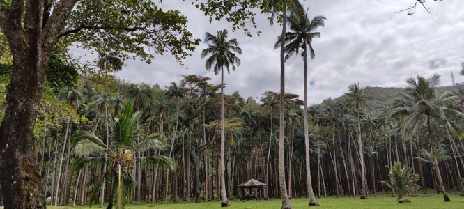 | 9 marcheurs téméraires étaient au rendez-vous à l'église de Notre Dame des laves à Sainte Rose à 8h00 par un temps plutôt maussade (pluie sur la route de St Denis à St Benoît) mais finalement le ciel s'est dégagé et à 11H30 tout le monde était à l'anse des cascades ... Courageux mais pas trop 2 chauffeurs ont pu se faire voiturer pour aller récupérer leurs véhicules et le tour était joué il suffisait de les attendre pour le petit pique-nique partage sous un kiosque ! |