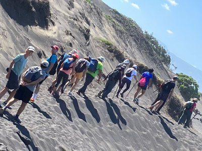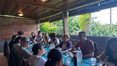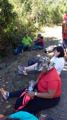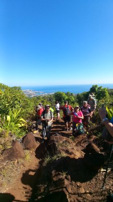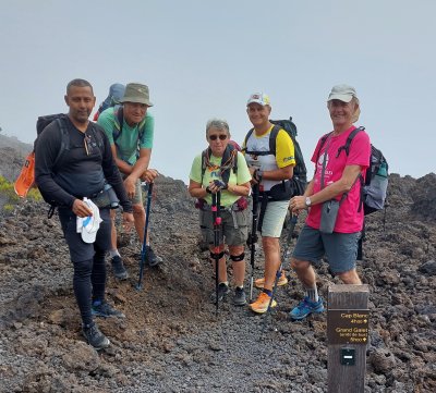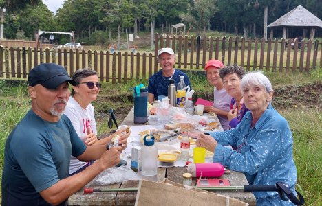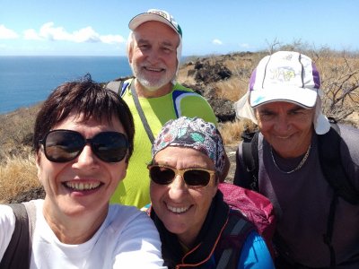| Nous étions 18 personnes au départ de notre petite rando de 6kms au dessus de St Leu et face à la pointe au sel. Arrivés aux kiosques à moitié de la boucle, nous avons partagé un petit encas avec café, cake salé et sucré et autres petites douceurs. De quoi nous booster avant de redescendre vers les voitures.Bon moment bien sympa. | |