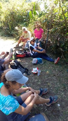 | Nous étions 7 personnes au départ de cette rando de presque 8 kms ... Un peu glissant, quelques goyaviers sur le parcours un départ vers 9 heures et un pique-nique partagé vers midi ! | |